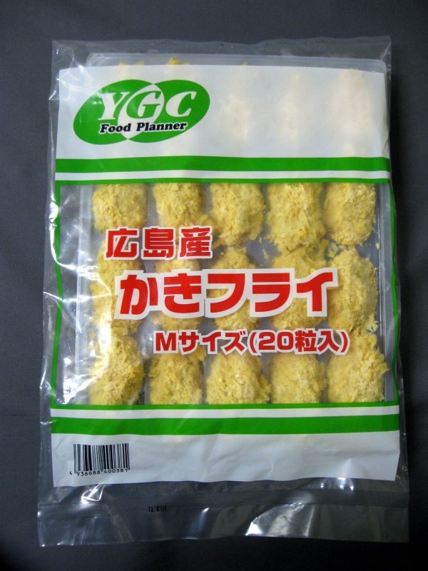 | 素材 | かき(広島産)、衣(パン粉、小麦粉、食塩、全粉乳、食用油脂、香辛料)、加工デンプン、調味料(アミノ酸)、着色料(アナトー色素) |