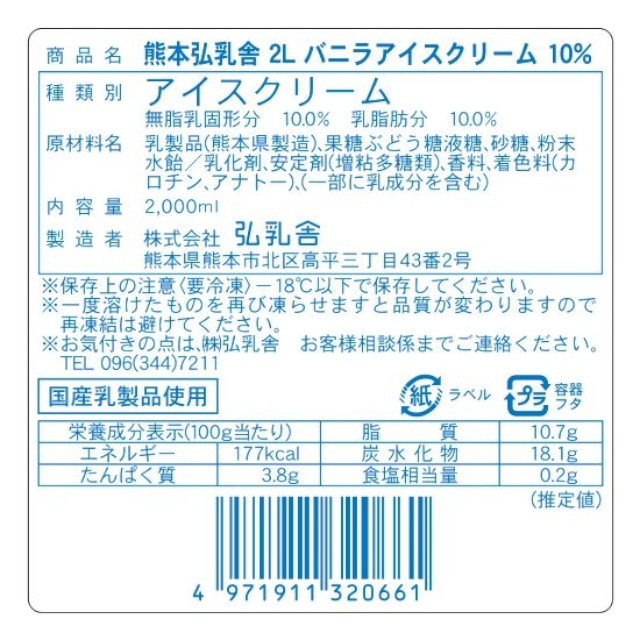 オリジナル)国産バニラアイスクリーム 2L【9月より価格変更】