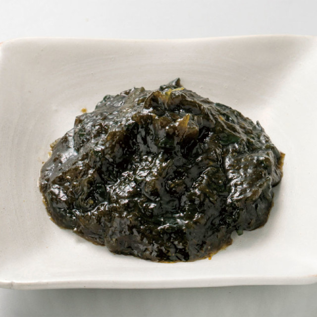 | 素材 | ヒトエグサ(国産)、わさび茎、わさび葉、砂糖、異性化液糖、アミノ酸液、食塩、寒天/ソルビット、調味料(アミノ酸等)、酸味料、増粘多糖類、甘味料(ステビア)、香辛料、香料、保存料(ソルビン酸K)、着色料(銅クロロフィリンNa)、(一部に小麦・大豆・ゼラチンを含む) |