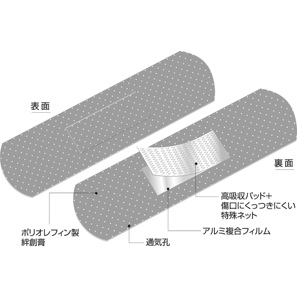 ポリオレフィン、アルミ複合フィルム、高吸収パッド+特殊ネット