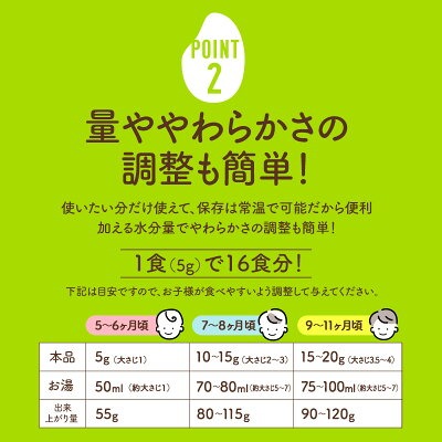- 5~6ヶ月頃:本品5g+お湯50ml